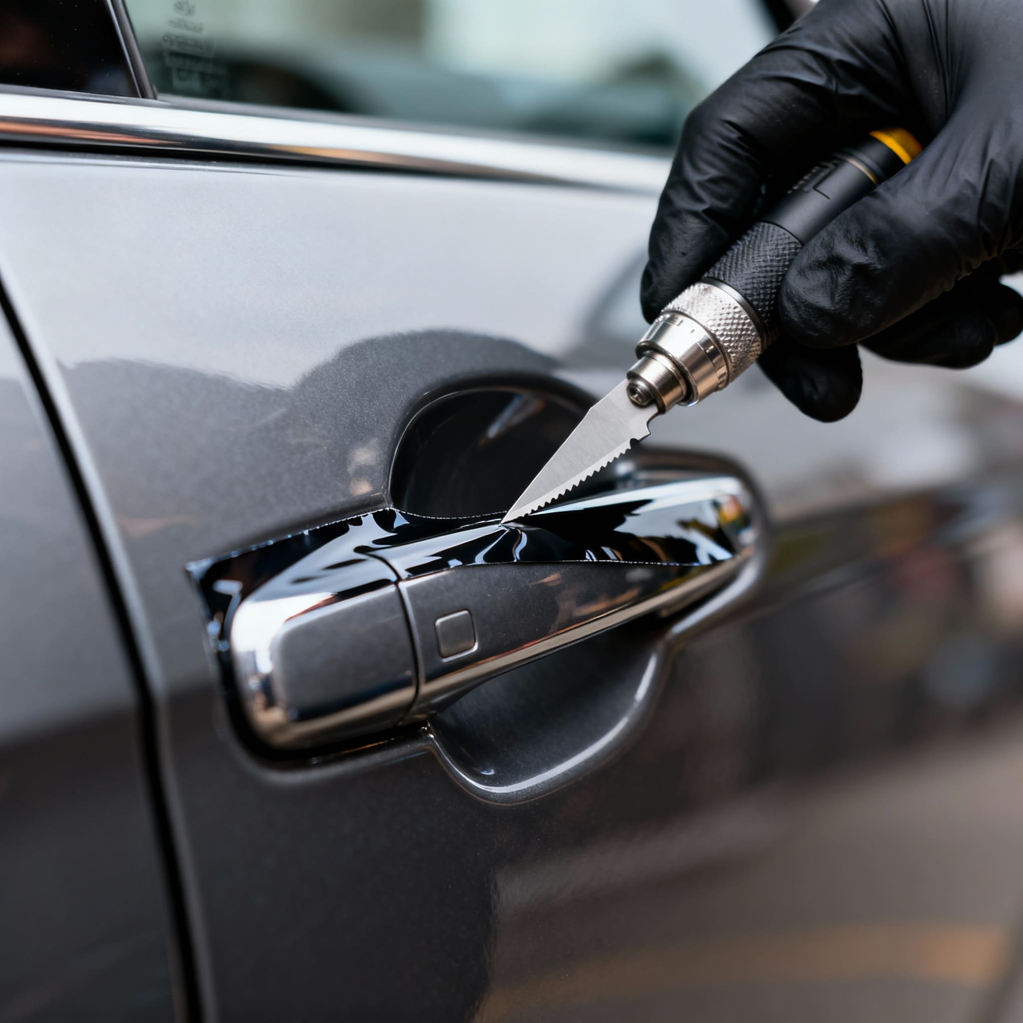 После нанесения пленки производится обрезка излишков и закрепление краев, чтобы создать аккуратный и профессиональный вид.
