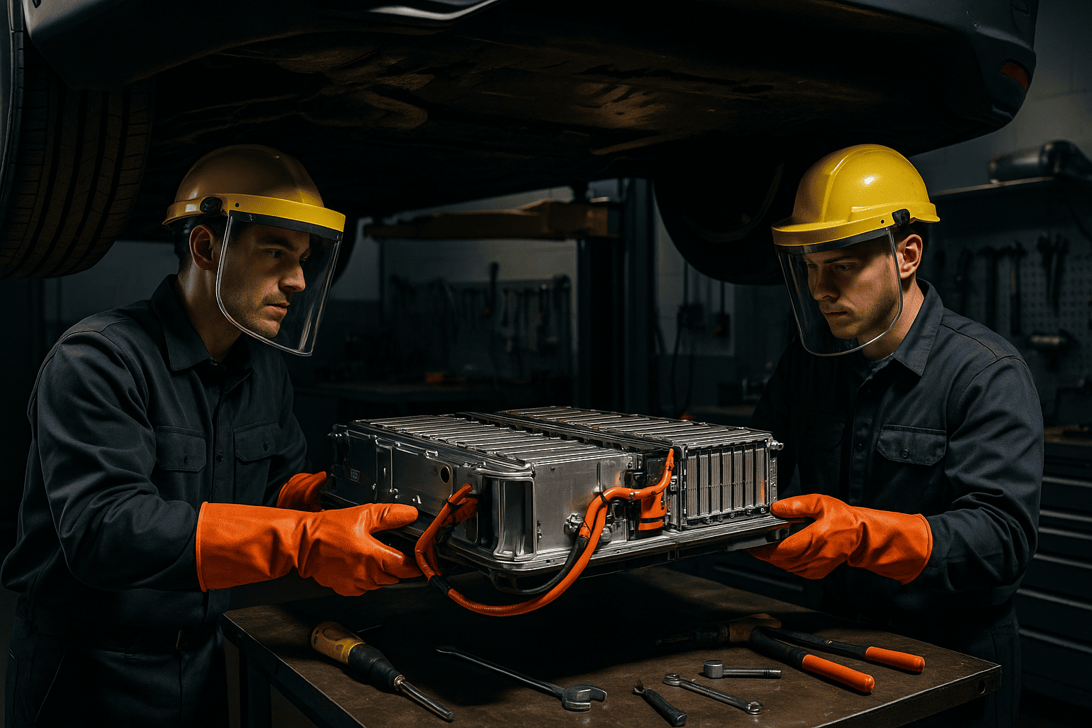 Если диагностика показывает необходимость аппаратного вмешательства, мы аккуратно демонтируем высоковольтный блок, строго следуя протоколам безопасности. Батарея помещается на разрядочный стенд в подготовленной мастерской. На этом этапе мы обеспечиваем полную разрядку до безопасного напряжения, что является обязательным условием для проведения дальнейших точных манипуляций с модулями.